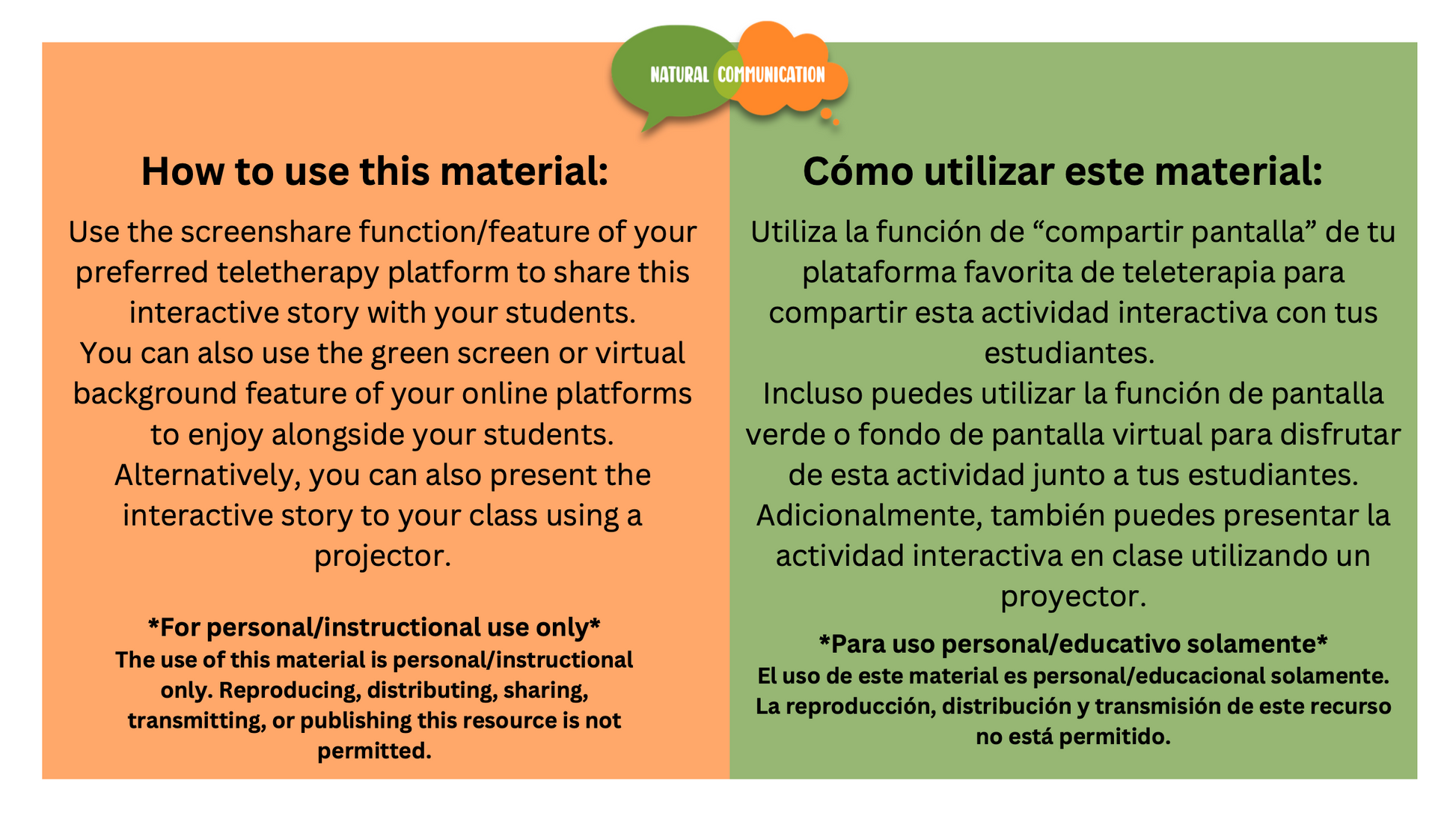 Head on over to Paulina's Teachers Pay Teachers store "Natural Communication Shop" (https://www.teacherspayteachers.com/store/natural-communication-shop) to find more interactive adventures like this one!